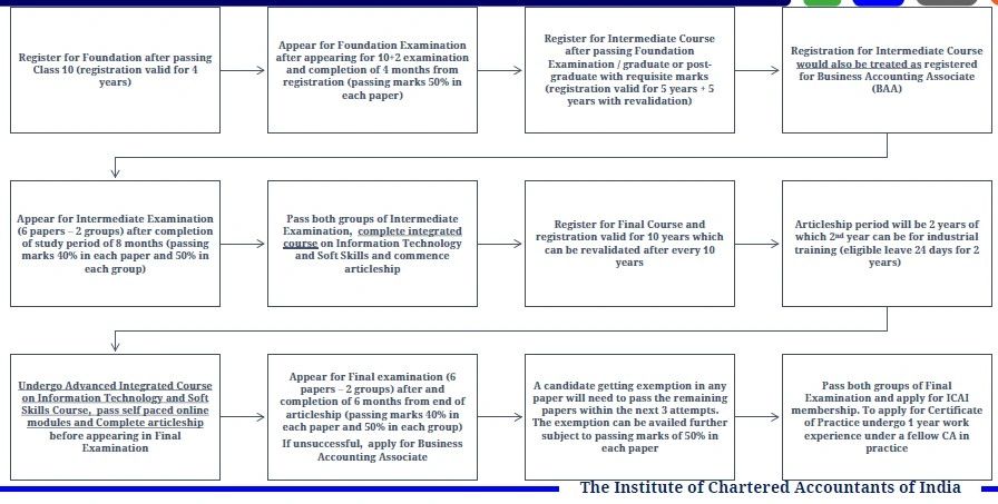 Eligibility for admission: - A student who has passed CA Foundation and class 12th Examination. Direct Entry Route: Commerce Graduates / Post-Graduates (with minimum 55% marks) or Other Graduates / Post-Graduates (with minimum 60% marks) or Intermediate level passed candidates of Institute of Company Secretaries of India and Institute of Cost Accountants of India.